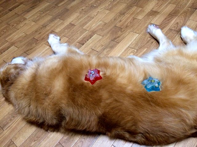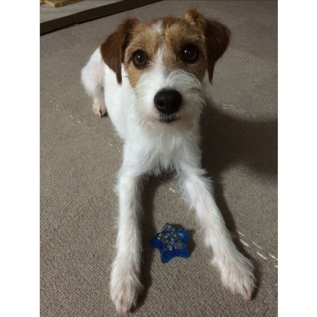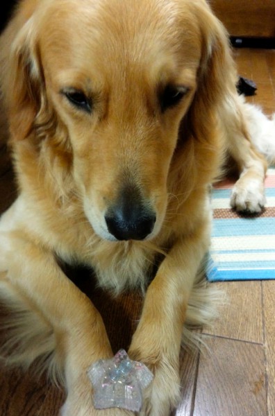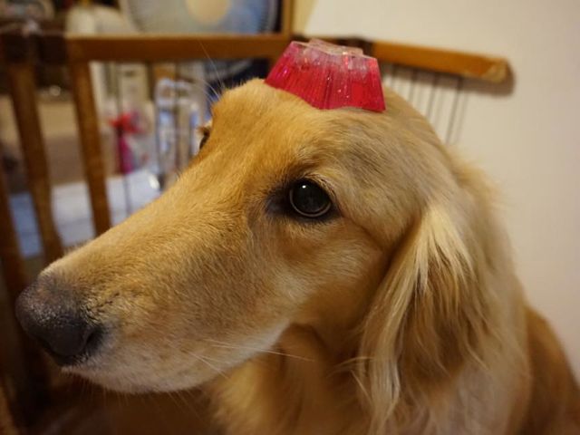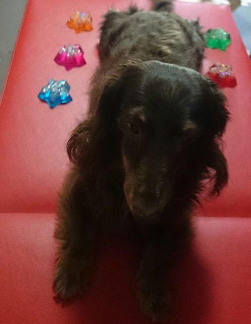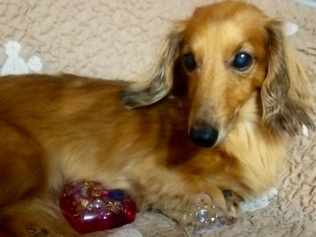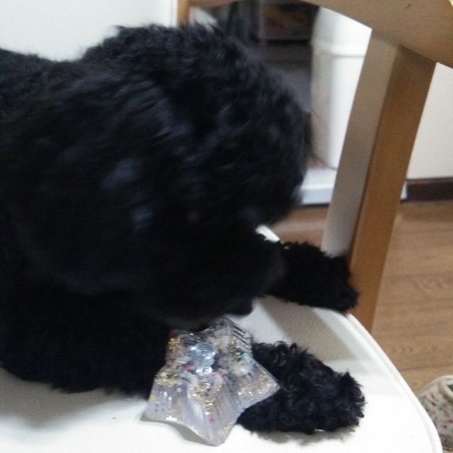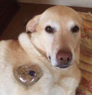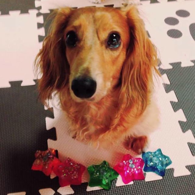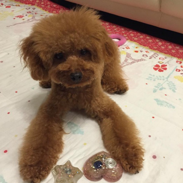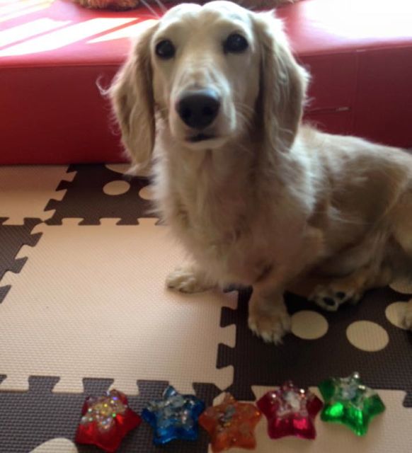 愛犬がオルゴナイトを載せたら、穏やか表情をしたので、