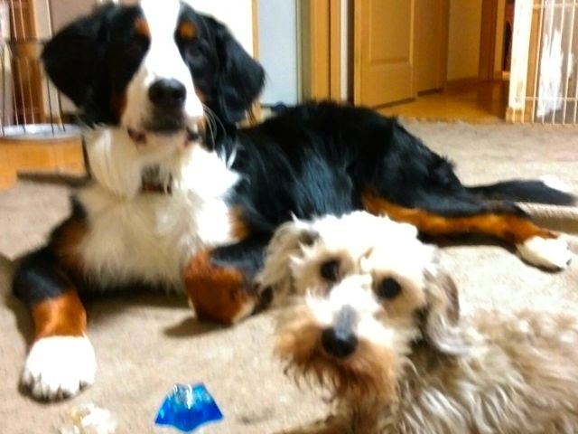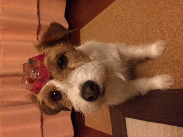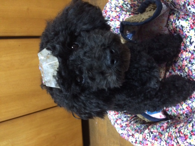 届いたとたん、寝ていた愛犬が 起きてきました。