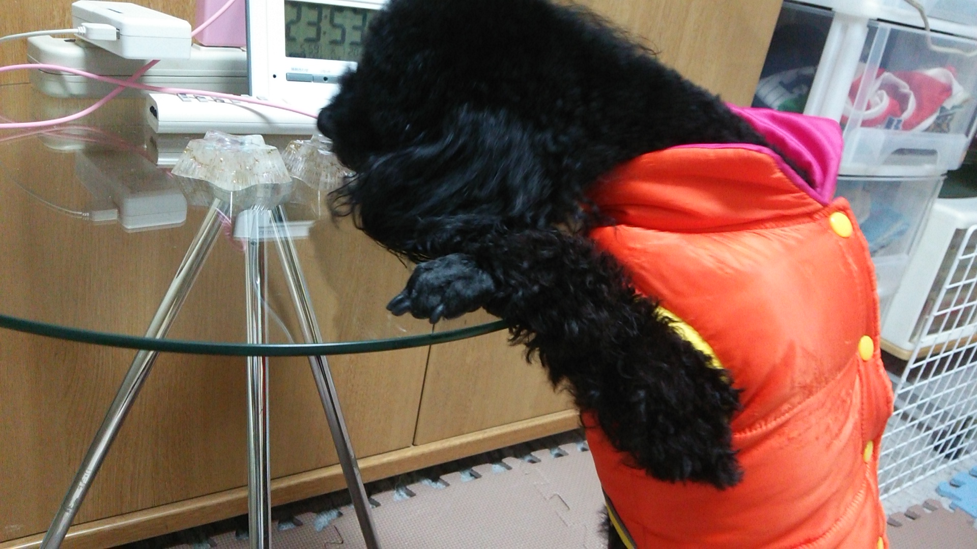 加えて〜行きたくて…テーブルの、上狙ってます