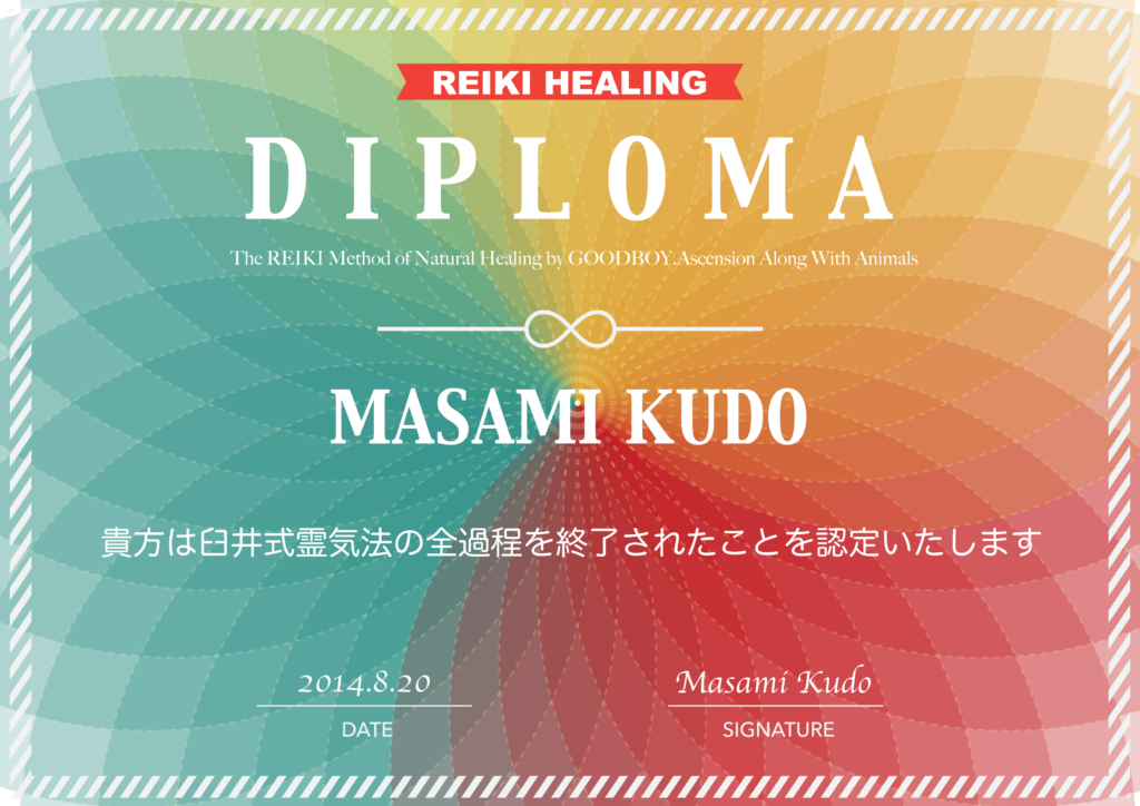 アニマルコミュニケーションとレイキアニマルヒーリングの認定書
